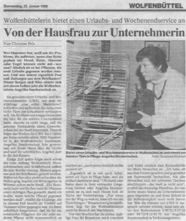 Ich freue mich, Sie auf meiner Seite von U W S begrüßen zu dürfen !